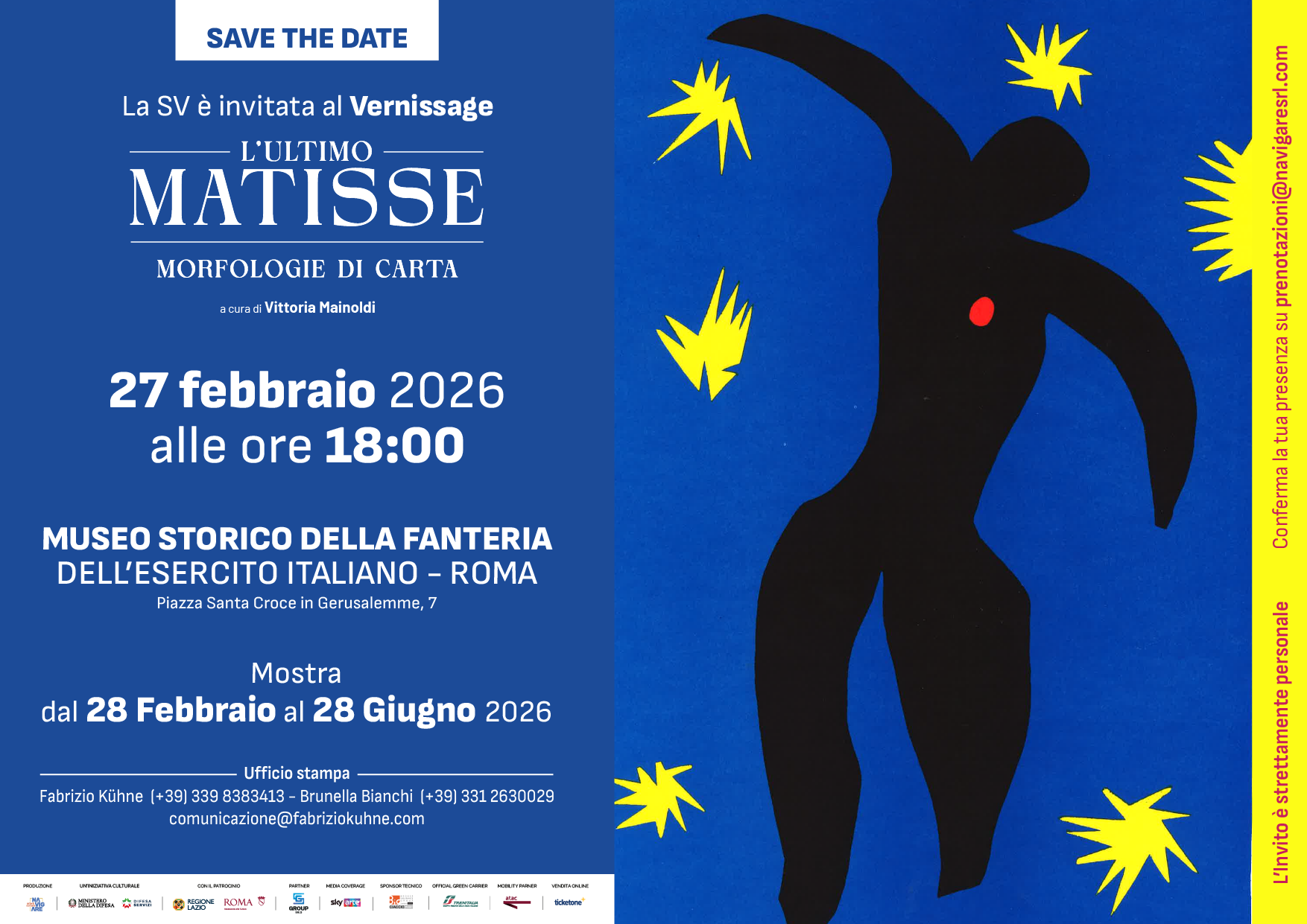 Entrare nelle sale del Museo Storico della Fanteria in questi mesi significa fare un piccolo viaggio dentro la mente di uno dei più grandi artisti del Novecento: Henri Matisse. Qui ha appena aperto una mostra intensa e poetica, “L’ultimo Matisse – Morfologie di carta”, visitabile fino al 28 giugno 2026.