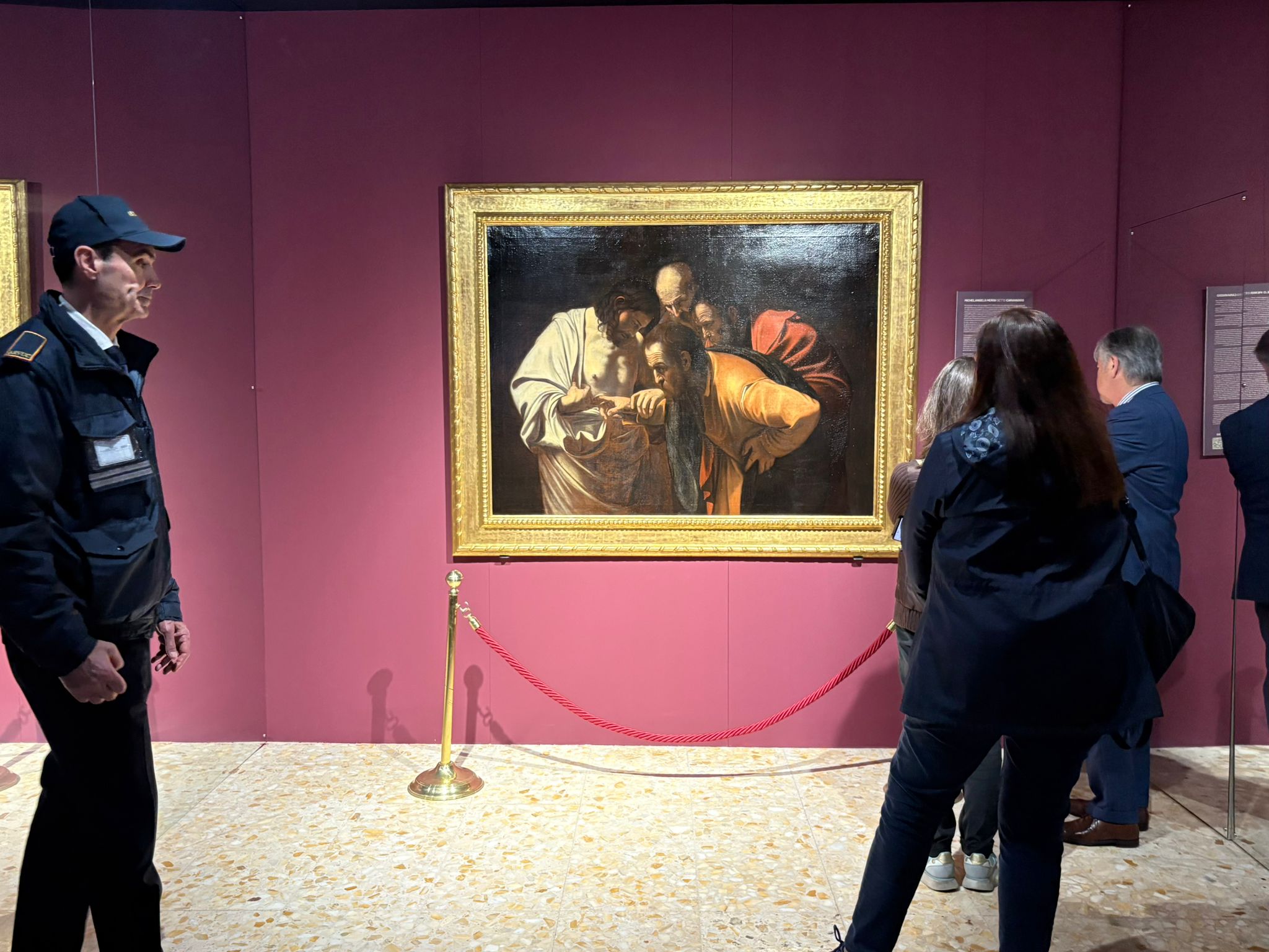 Il percorso culmina con una delle immagini più intense legate alla pittura di Caravaggio: L’Incredulità di San Tommaso.