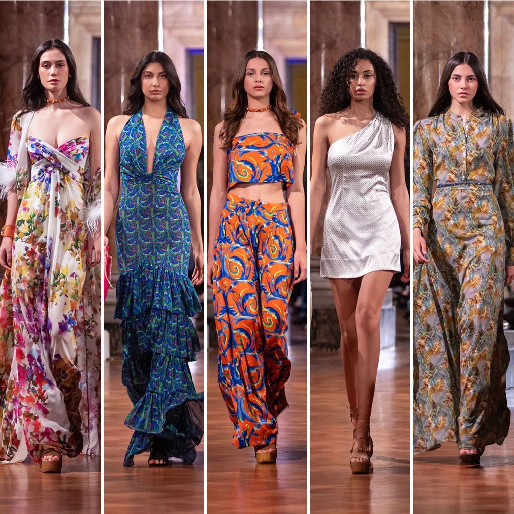 Questa collezione non si limita a essere vista: si percepisce. I tessuti — sete pregiate, fibre naturali e materiali leggeri — accarezzano il corpo, trasformando ogni movimento in un’esperienza sensoriale. Le silhouette sono fluide, mai rigide, pensate per seguire il ritmo naturale di chi le indossa. È una moda che respira, che vive, che dialoga con il corpo e con l’ambiente circostante.