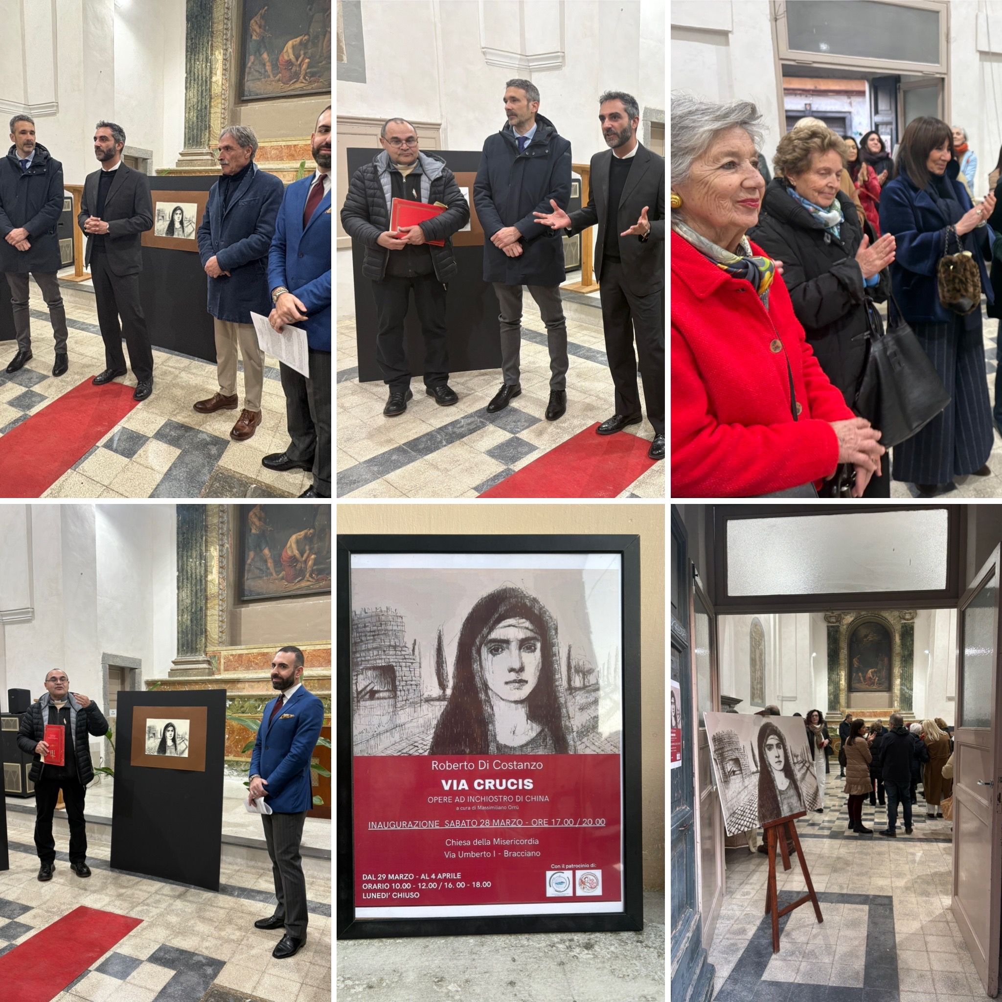 Nel suggestivo centro storico di Bracciano, tra vicoli silenziosi e scorci che raccontano secoli di storia, c’è un luogo che negli ultimi giorni è tornato a riempirsi di arte e contemplazione: l’antica Chiesa della Misericordia. A pochi passi dal maestoso Castello Orsini-Odescalchi, questo piccolo gioiello architettonico del Seicento ospita la mostra “Via Crucis” dell’artista Roberto Di Costanzo.